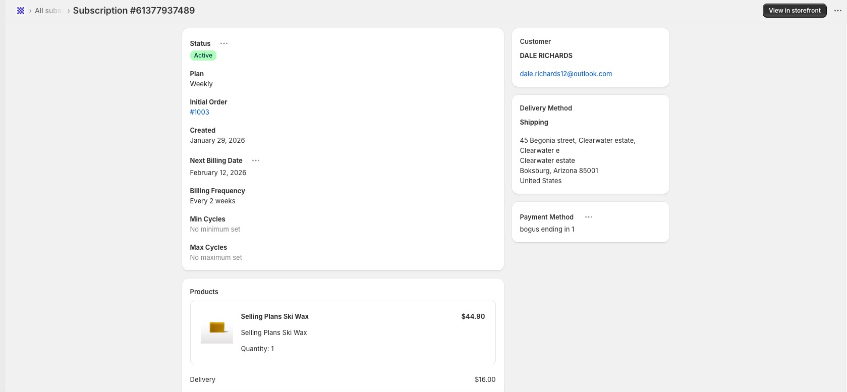 You’ll also see a "View in storefront" button in the top-right corner for a direct preview of the plan on your live store.