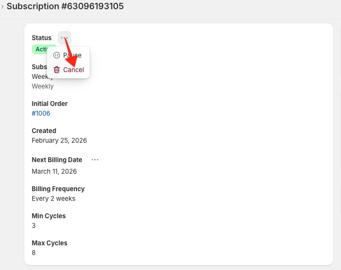 - Locate the subscription you wish to end.